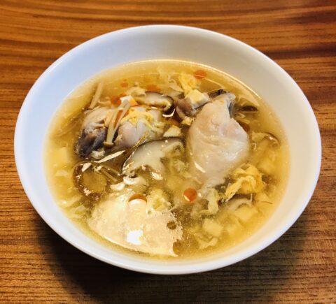 酸辣湯スープ 2024 10/09 料理 2024.10.9 疲れた時には、このスープを作ります。酸味と辛味、手羽元の鶏出汁がジワーと身体に沁みてきます。 【2人前】手羽元4本、椎茸2個、えのき20g、絹豆腐150g、卵1個、鶏ガラスープ、酢30cc、醤油5cc、塩5g、片栗粉、辣油 料理 居相毅バースデーライブ かぼちゃのスープ