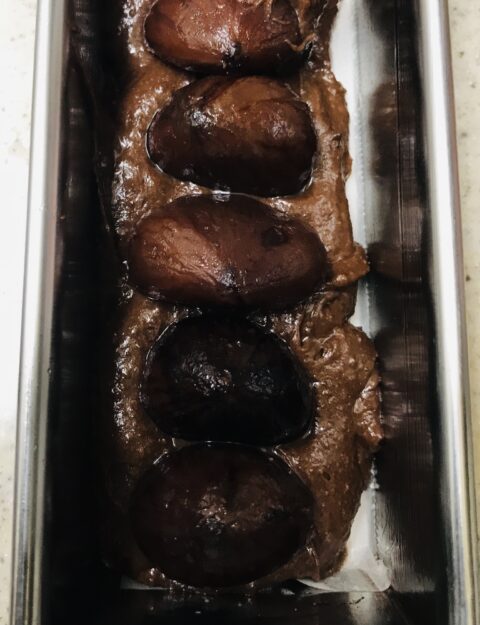 以前より作ろうと思っていた組み合わせ。ただし、普通のガトーショコラの様にメレンゲを別立てせずに、バターの一部をクーベルチュールチョコレート、小麦粉の一部をココアに置き換えて作ってみた。カカオの苦味を加味して砂糖は一割増する。なかなか良い出来かな。
